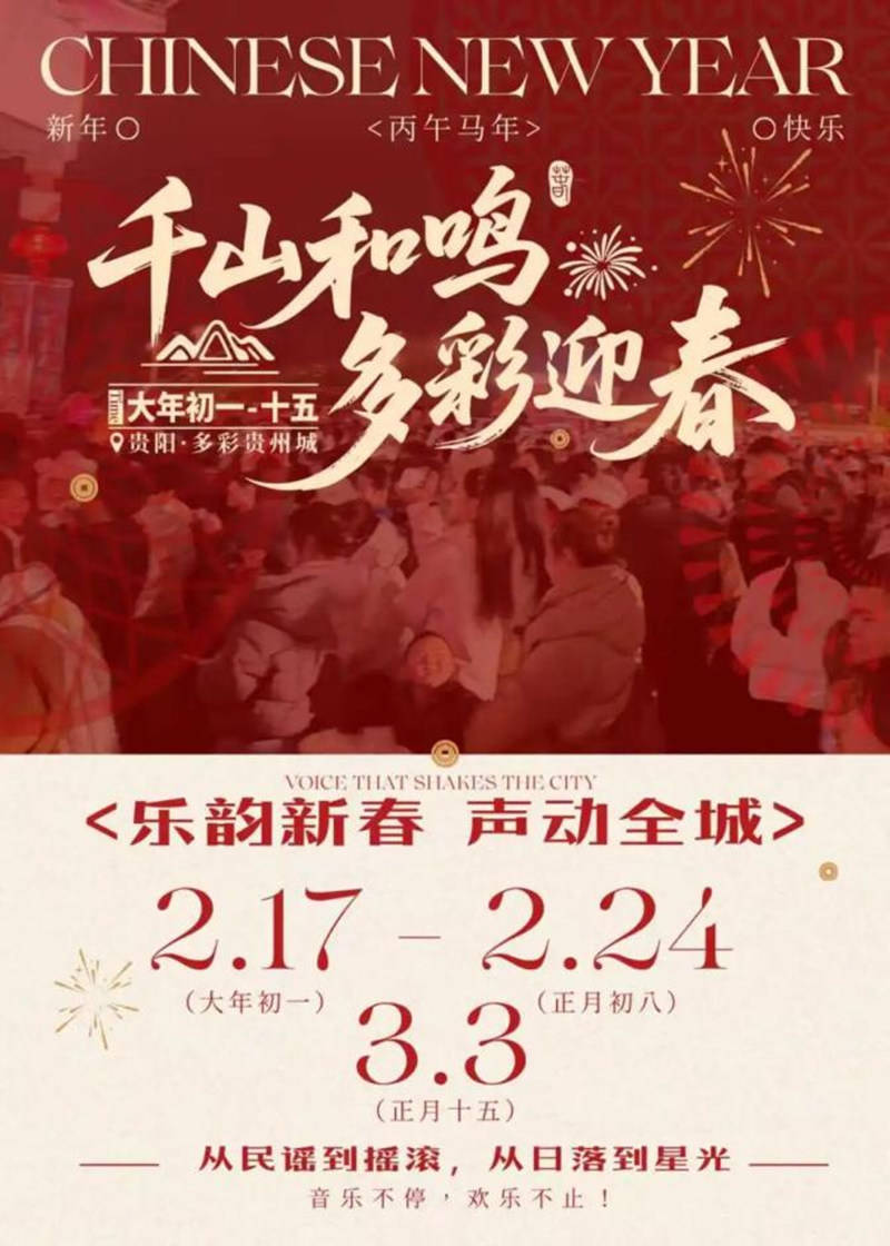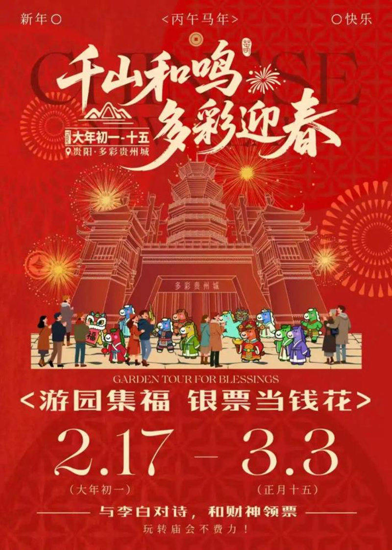 2月17日至3月3日,多彩贵州城“千山和鸣·多彩迎春”新春游园大庙会邀您赴约,逛庙会、赏散乐、品年味,让搭客千里浸式体验浓郁的年节氛围。