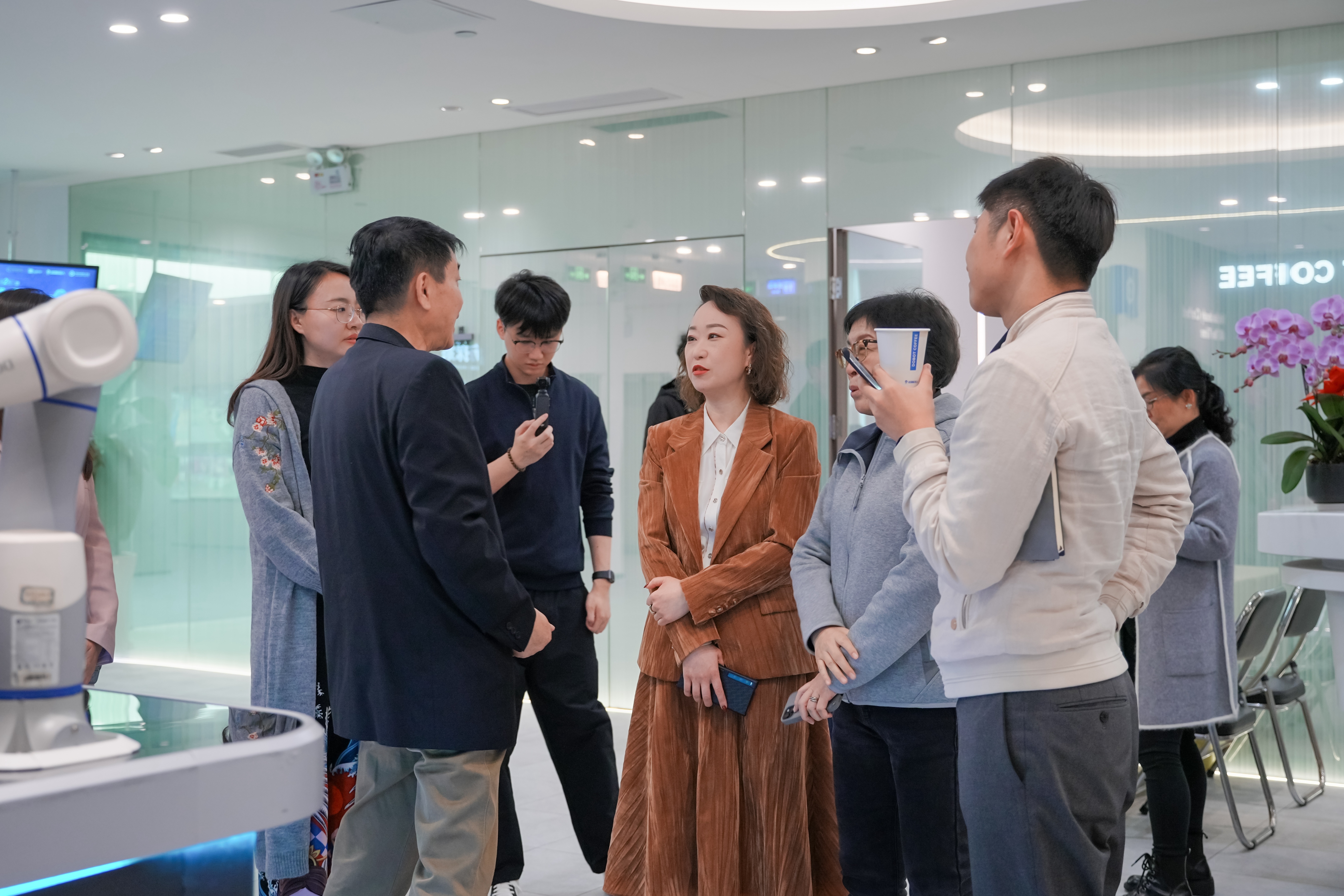 在越疆机器东说念主展厅内,参不雅东说念主员品味着由机器东说念主制作的带有考究图案的醇香咖啡,不雅看着一台搭载着越疆SafeSkin®柔性安全皮肤时间的机械臂展示优厚的东说念主机安全配合避险机制,AI机器东说念主自主学习刷盘子,东说念主群中时频频爆发阵阵咋舌.....