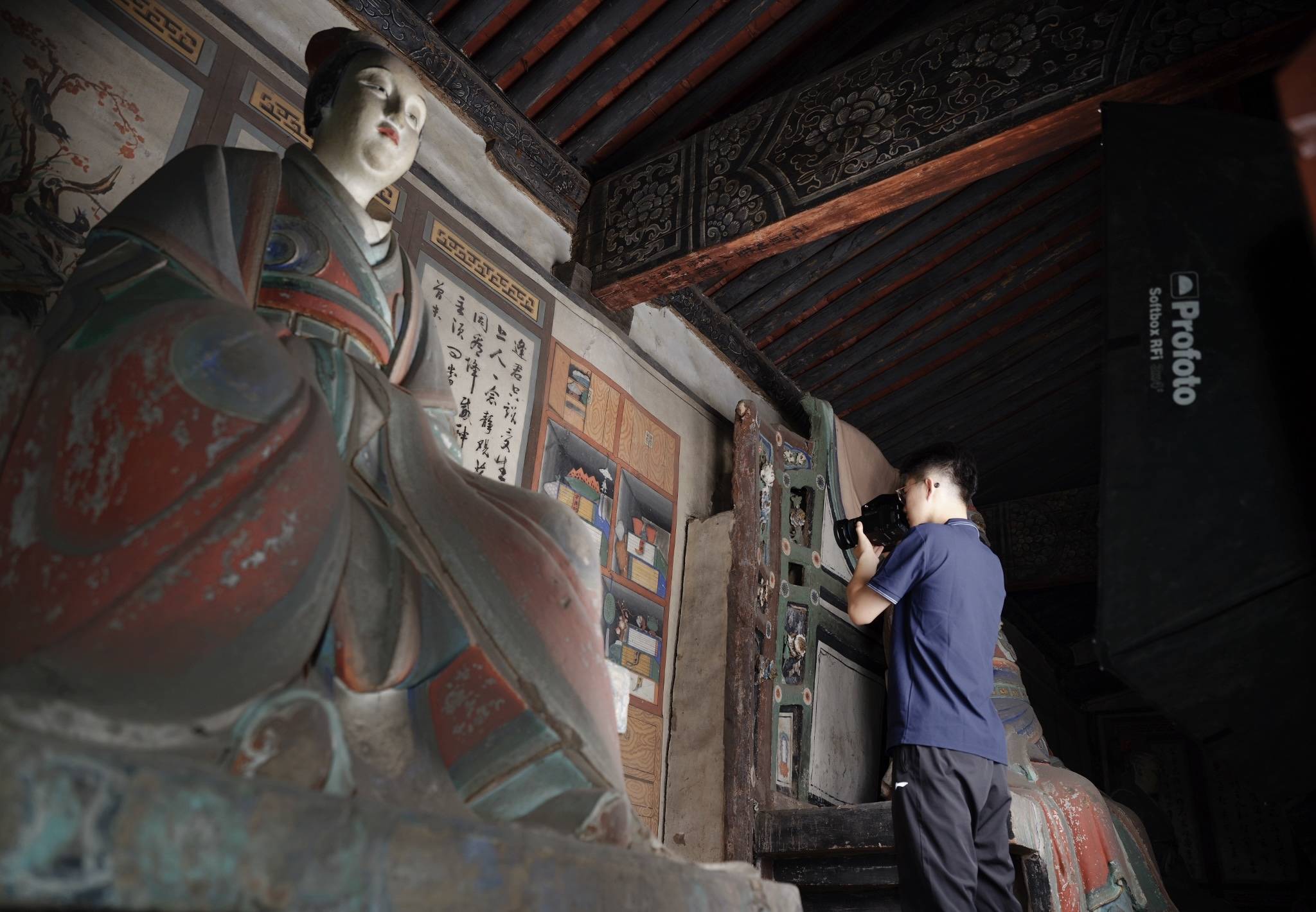 2025年8月19日,文物扫描员在山西省平遥县的一处古建筑内进行数字扫描。新华社发