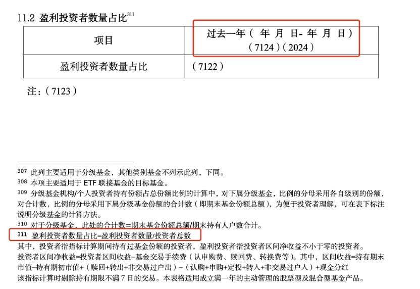 关于成立满一年的主动处治的股票型及夹杂型基金居品,基金公司需要在半年报、年报中涌现当年一年时候里,盈利投资者数目占比,并给出计较公式,即盈利投资者数目占比=盈利投资者数目/投资者总额,其中,投资者宗旨计较期间捏有过基金份额的投资者,盈利投资者指投资者区间净收益不小于零的投资者。